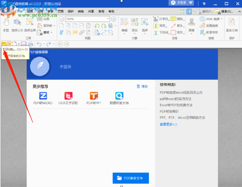 1.首先第一步我们打开软件之后点击下图所示的这个打开文件的按钮,点击之后即可选择想要拆分的PDF文件。
