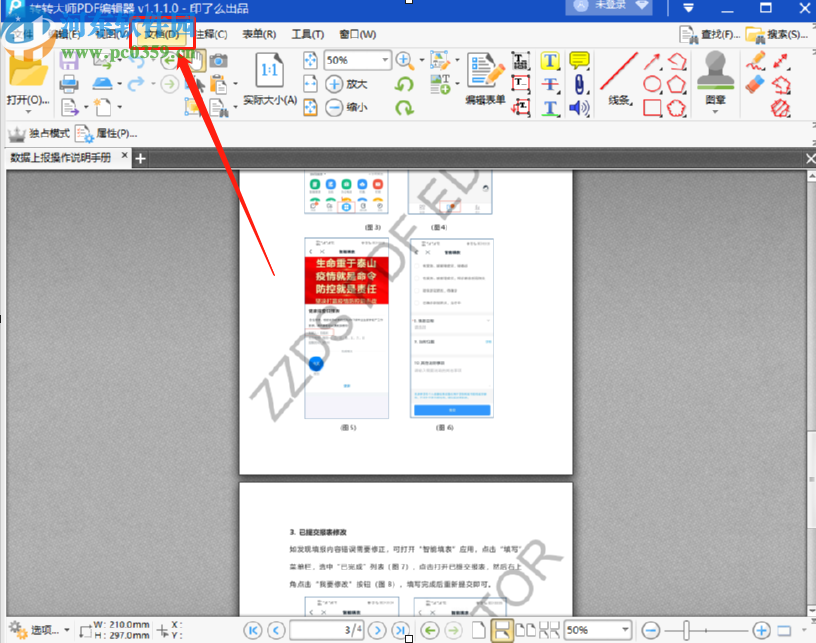 3.点击打开按钮之后PDF文件就成功添加到软件界面中了,然后我们点击界面上方的文档这个选项可以打开文档设置功能界面。