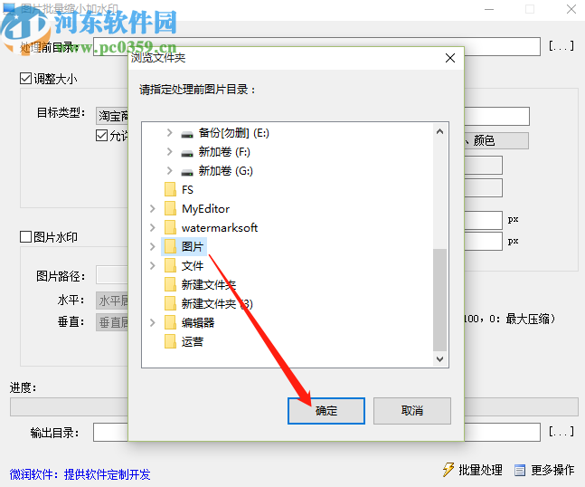 5.设置完成之后我们点击输出目录右边的三点按钮,然后在出现的界面中可以设置图片添加水印之后的输出储存位置。