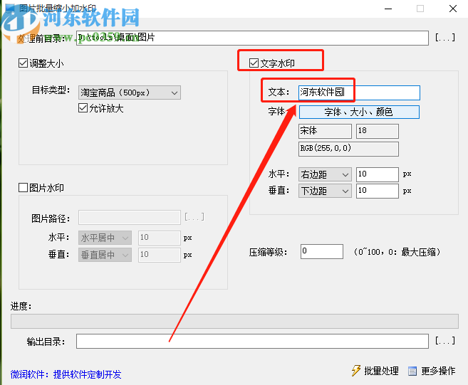 3.点击确定按钮之后我们就选择好想要添加水印的图片了,然后下一步是勾选文字水印这个功能,在文本这一项输入想要添加的水印内容。