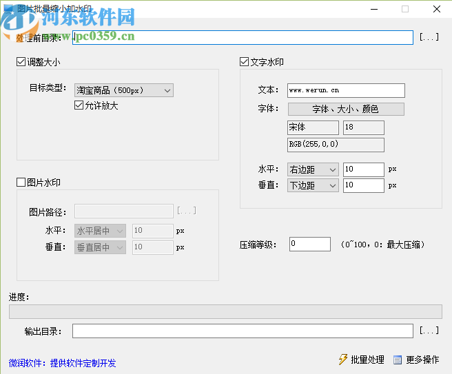 6.最后设置好文件输出储存位置之后,点击界面右下角的批量处理这个功能按钮就可以开始批量给图片添加水印了。