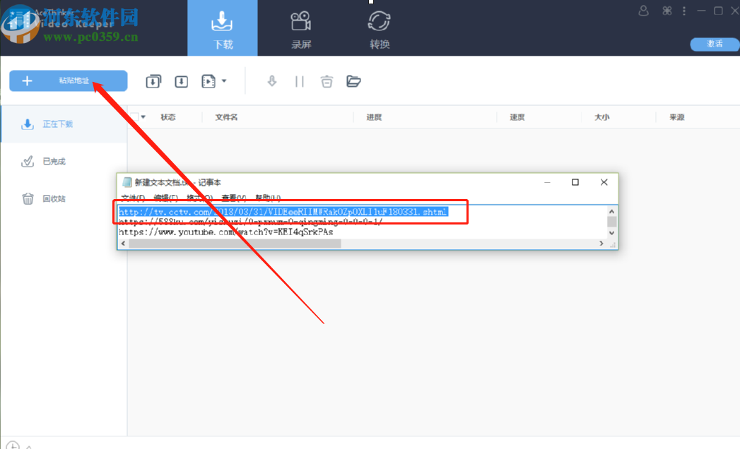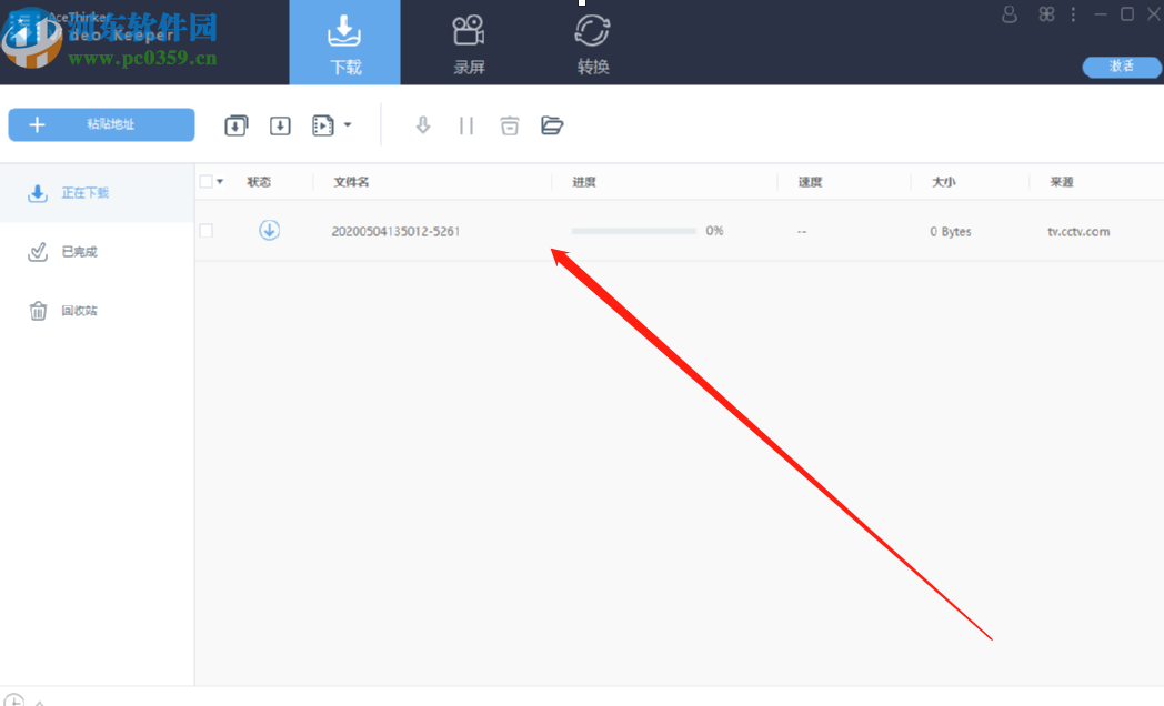 2.点击粘贴地址按钮之后软件就会自动识别到该网页链接中的视频文件了,识别之后会自动开始下载,我们可以看到下载进度。