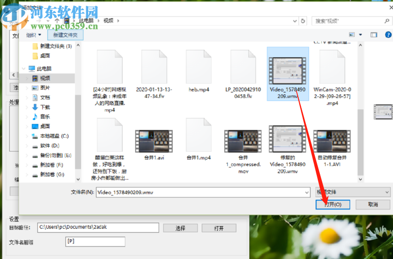 2.点击添加按钮之后,接下来在打开的选择文件界面中,我们选中目标视频文件之后,点击界面中的打开按钮。
