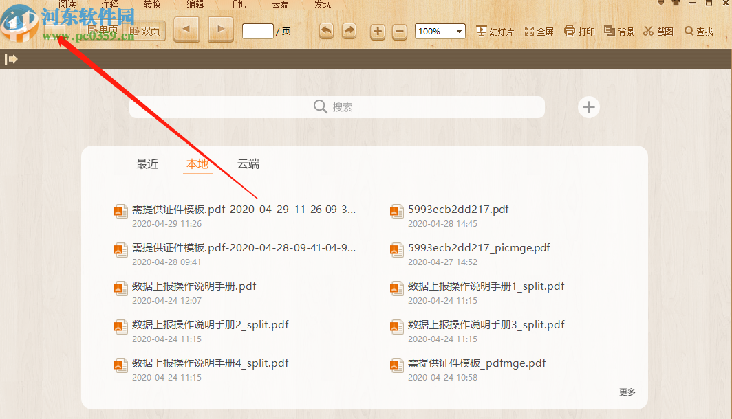 1.首先第一步我们先打开一个PDF文件进入到阅读PDF文件的界面中,这样方便查看切换夜间模式的效果,点击界面左上角的文件夹图标。