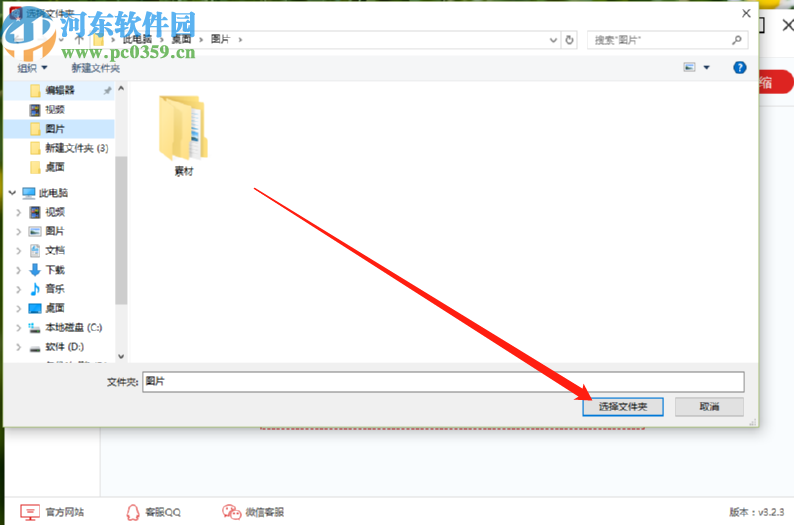 2.点击添加文件夹按钮之后紧接着下一步就会出现一个选择文件的界面了,在这个界面中选中想要压缩的图片所在的文件夹,选中之后点击选择文件夹按钮。