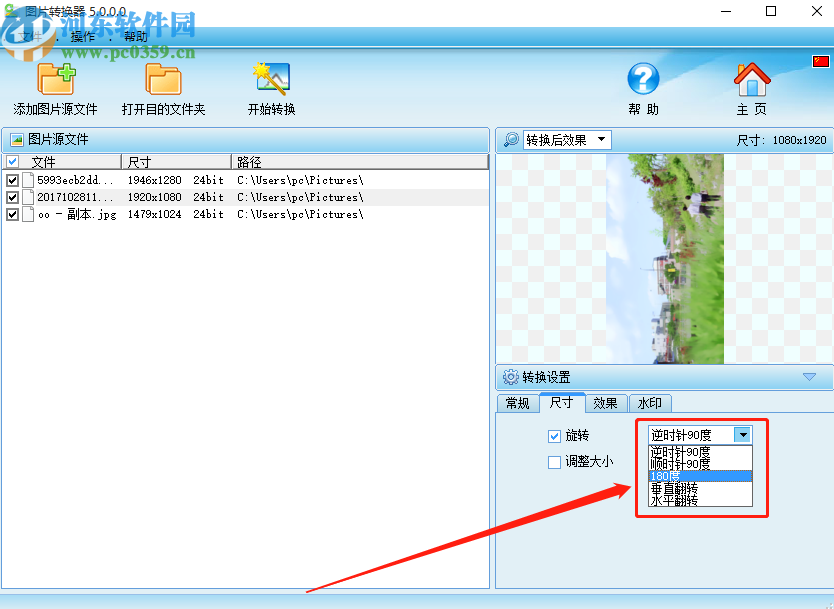 5.设置好旋转角度之后,在界面中可以看到图片旋转之后的效果,点击开始转换按钮就可以开始转换这些图片的方向了。