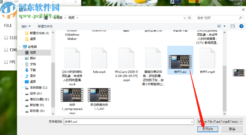2.点击文件按钮之后下一步会打开一个选择文件的界面,在这个界面中我们选中目标AVI视频文件之后点击打开按钮。