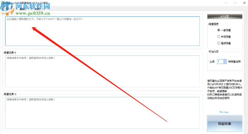 3.根据自己的需求设置好降重程度之后,我们点击界面下方的智能降重按钮软件就会开始帮我们降重文字的操作了。