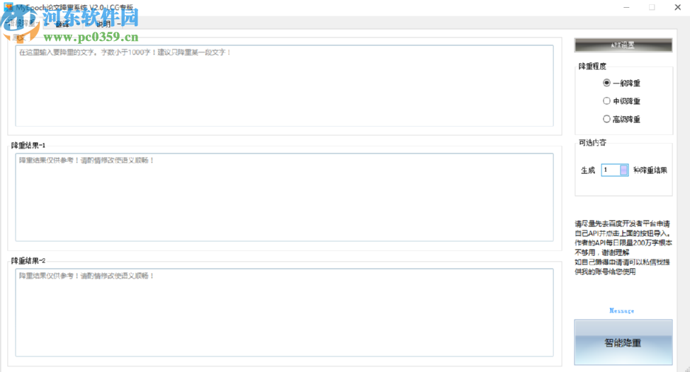 5.等到降重操作完成之后在界面左边的降重结果1和降重结果2这两个文本框中就可以看到降重结果了,用户根据自己的需求选择使用降重结果文字即可。