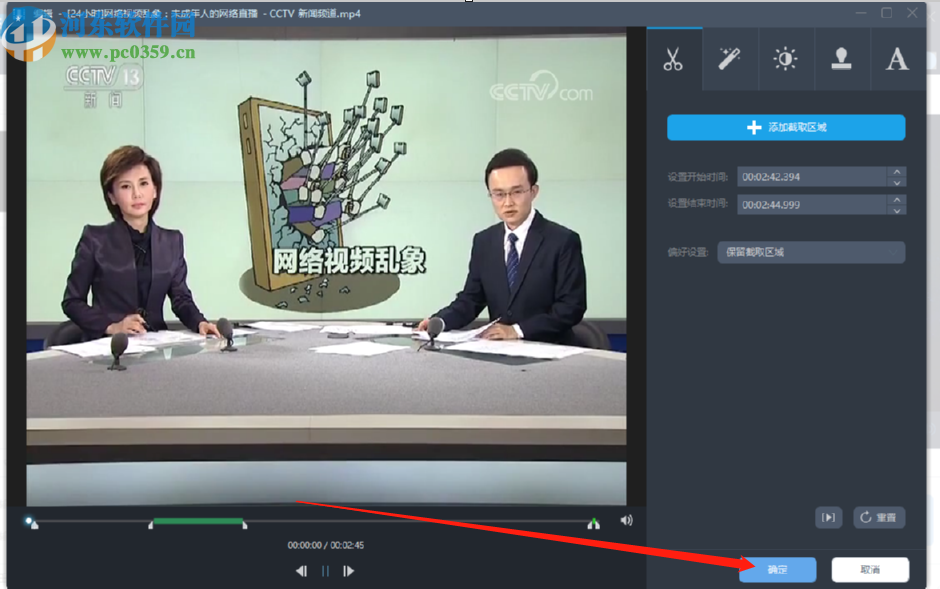 5.点击添加截取区域之后,我们想要截取的视频片段就选择完成了,然后我们点击编辑界面右下角的确定按钮即可。