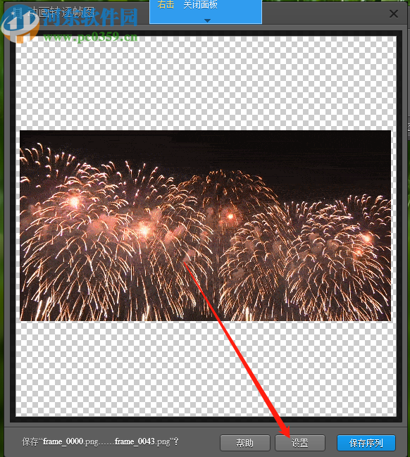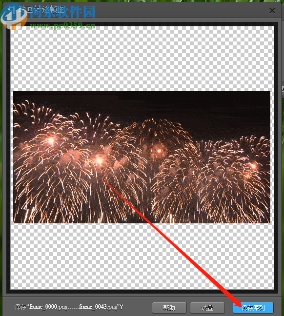 5.设置完成之后我们回到动画转逐帧图的功能界面,然后点击右下角的保存序列按钮,如下图中所示。