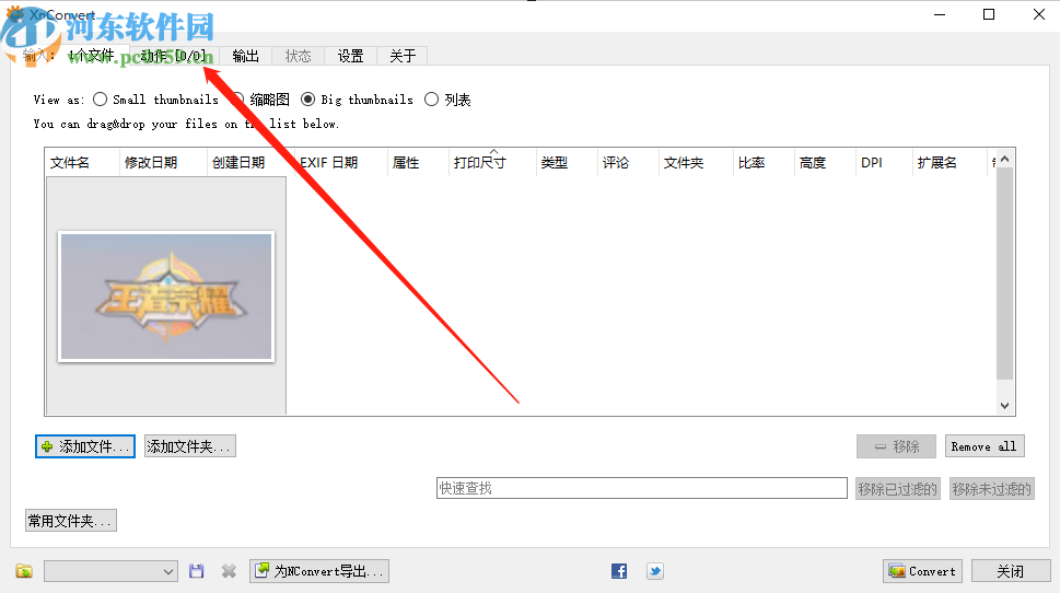 3.点击这个打开按钮之后我们在出现的界面中就可以看到添加进来的图片了,接着需要点击上方的动作选项卡。