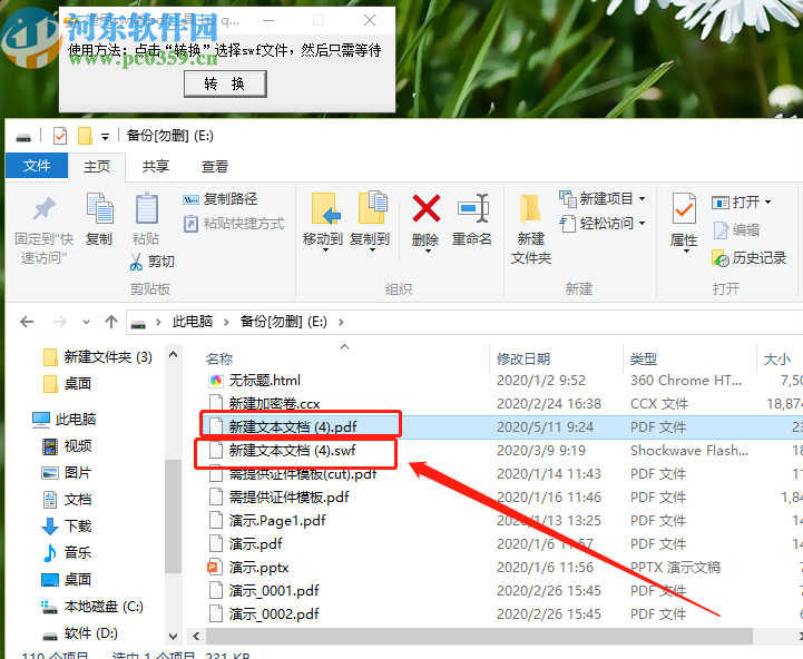 4.很多用户在转换完成之后不知道怎么找到转换之后的文件,其实我们打开刚才转换的SWF文件所在的文件夹,就可以看到转换之后的PDF文件了,名称与转换之前的SWF文件相同,如下图中所示。