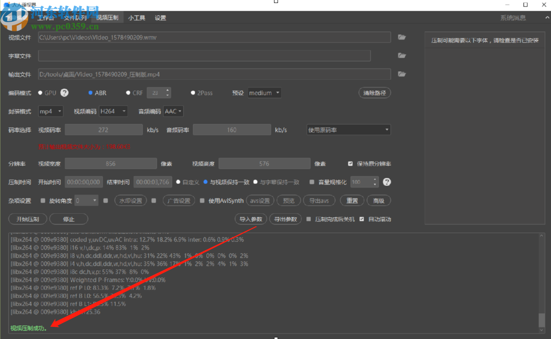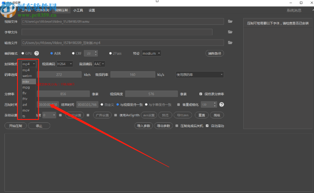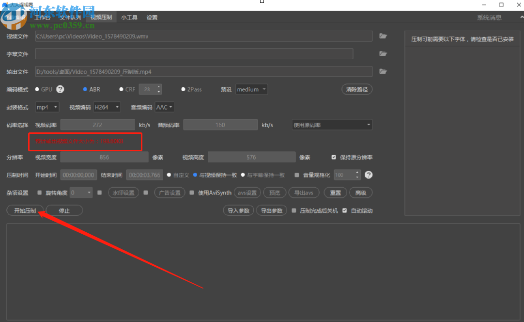 5.下一步我们根据自己的需求在界面中设置好这些视频参数之后可以看到预计输出的视频文件大小,点击开始压制按钮即可开始压制视频的操作。