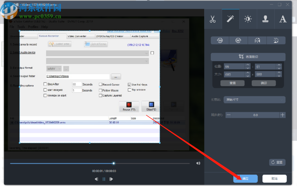 6.设置好裁剪视频的尺寸之后我们点击界面下方的确定按钮可以将裁剪操作应用到视频中。