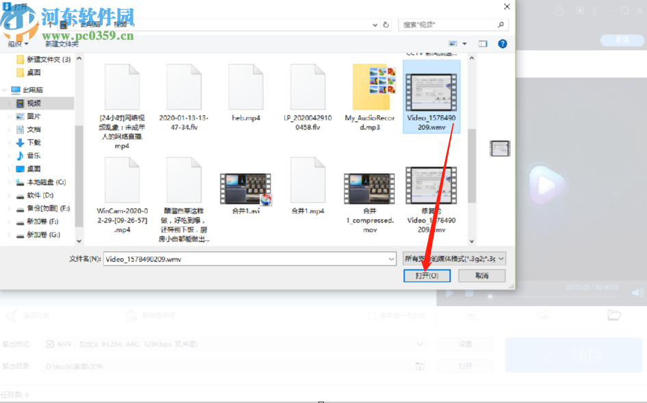 2.点击添加文件这个功能按钮之后下一步会出现一个选择文件的界面,我们在其中找到想要裁剪的视频选中之后点击打开按钮。