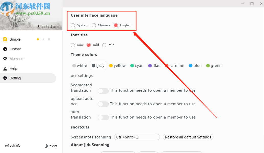 极度扫描PC版是一款文字识别软件,它可以帮助用户快速的扫描图片、PDF文件中的文字内容,这样用户就可以将这些文件上的文字内容单独提取下来保存了,在用户需要获取这些文字的内容,又无法复制粘贴的时候就可以用到这款软件来扫描提取了,很多用户在下载软件安装之后,发现软件界面是英文的,因此很多操作功能都看不懂,那么接下来小编就跟大家分享一下将这款软件设置成中文界面的操作方法吧,有需要的朋友不妨一起来看看这篇方法教程,希望能帮到大家。