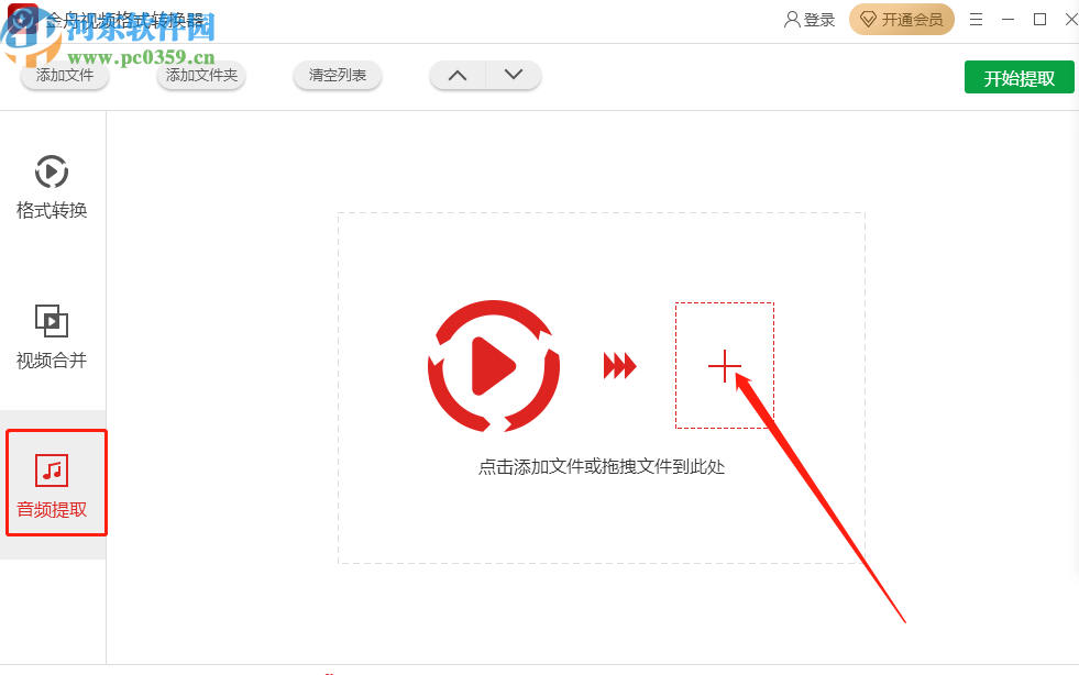 1.首先第一步我们打开软件之后点击左边的音频提取功能,接着点击界面中的加号图标。