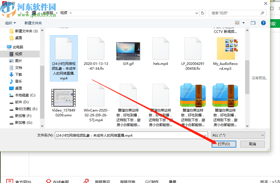 2.点击加号图标之后下一步在出现的界面中我们选中想要处理的视频文件之后点击右下角的打开按钮即可。