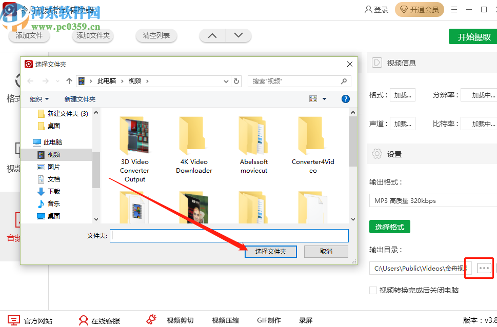 4.选择好音频文件格式之后我们点击输出目录右边的三点按钮,然后可以设置音频提取之后的储存路径。