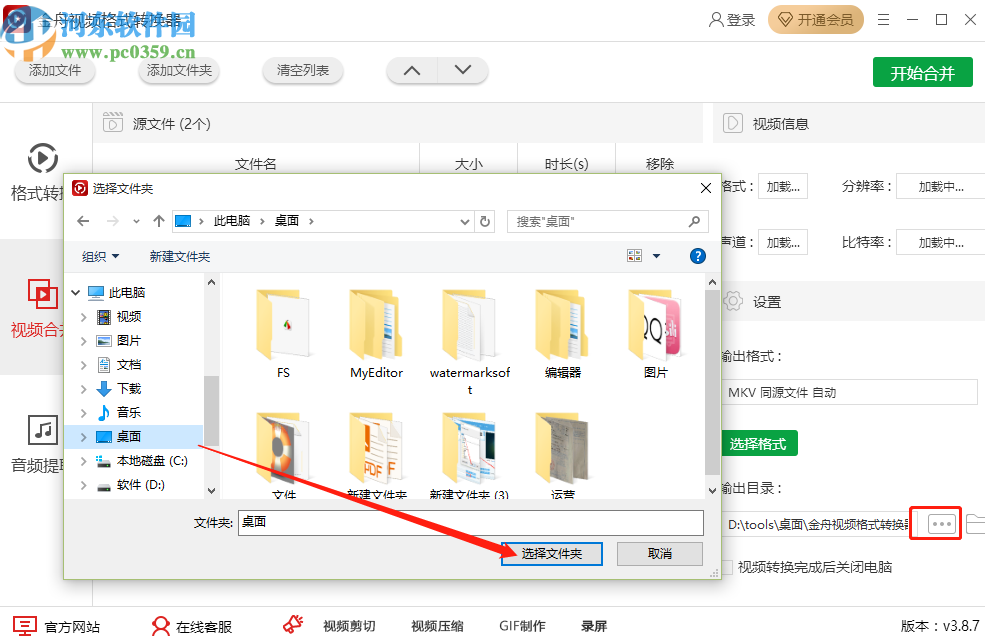 5.设置好合并视频的参数之后,下一步点击输出目录的三点按钮,点击之后在出现的界面中选择目标输出路径即可。