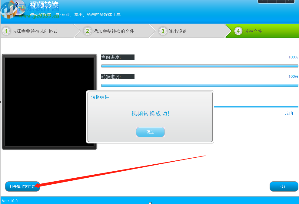 7.等到转换操作完成之后,我们在界面中就可以看到视频转换成功的提示了,点击界面中的打开输出文件夹按钮即可查看转换之后的视频文件。