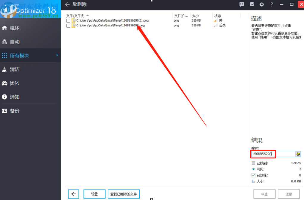4.然后我们在界面右下角的结果模块,找到搜索框输入想要恢复的文件名称关键词进行搜索,然后就可以快速的找到想要恢复的删除文件了。