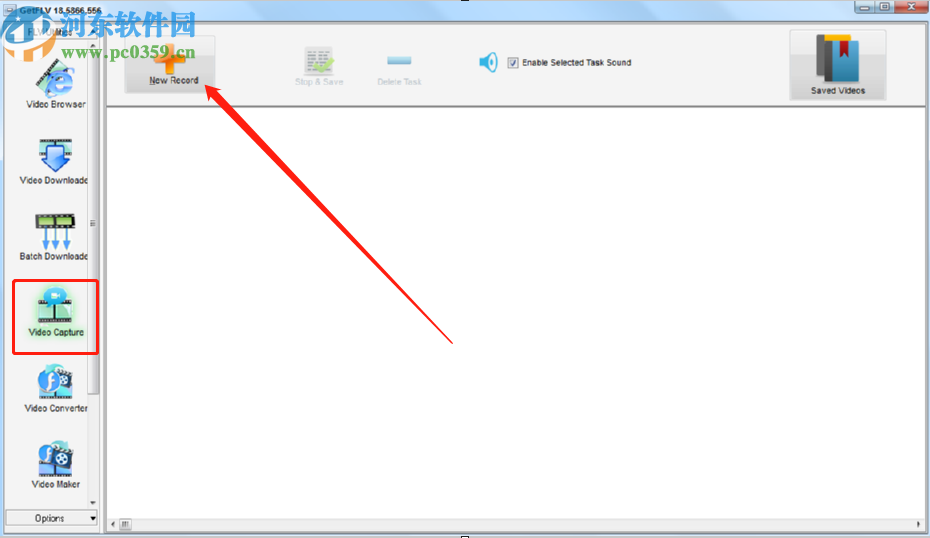 1.首先第一步我们打开软件之后点击界面左边的Video Capture这个功能,然后点击界面中的New Record这个新的录制按钮。