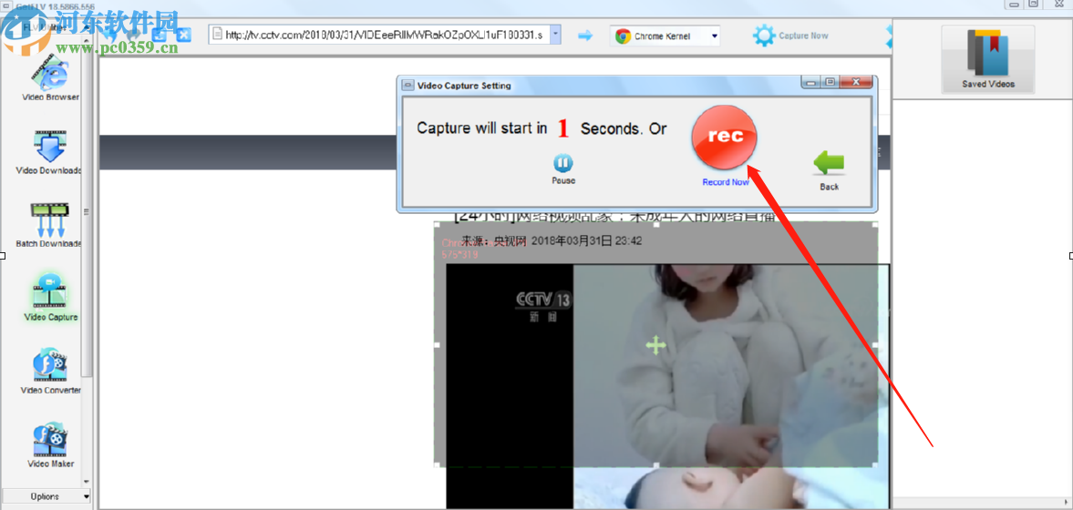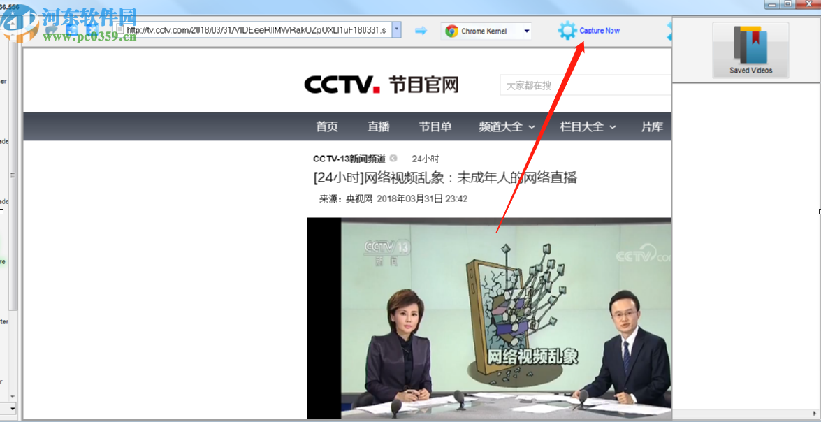 3.点击这个图标之后软件就会识别网页链接中的视频文件了,等到识别完成之后会显示网页界面到软件中,然后我们点击上方的Capture New这个按钮。