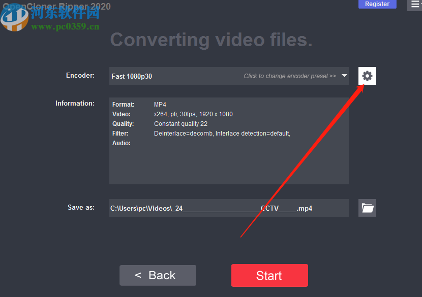 4.点击下一步进入到视频的参数设置界面之后,我们点击界面中的齿轮图标即可打开设置视频参数的功能界面。