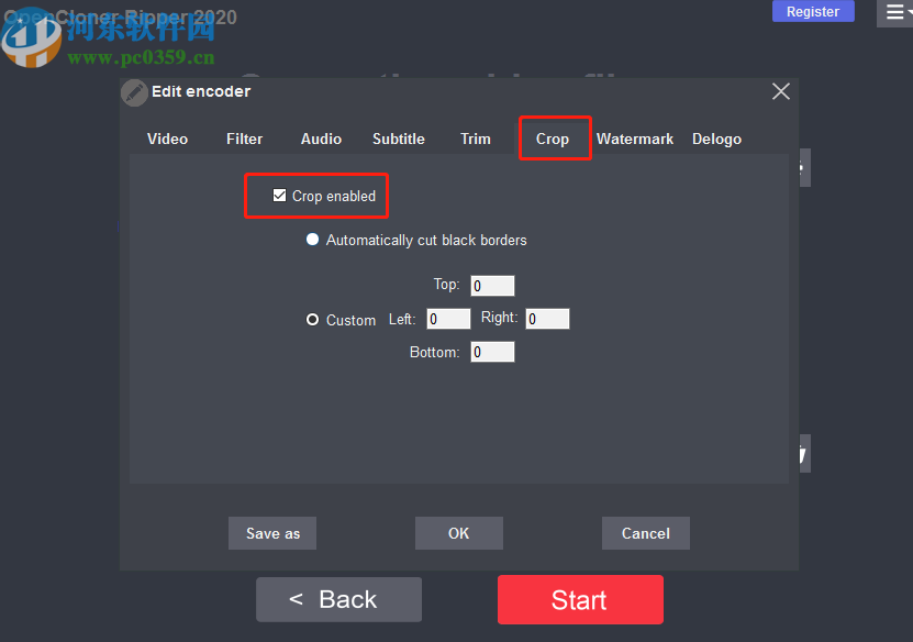 5.点击这个设置界面之后,我们在出现的选项中选择Crop这个裁剪功能,然后勾选Crop enabled这个选项。
