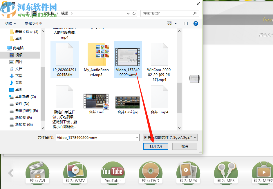 2.点击添加按钮之后下一步在出现的选择视频界面中选中想要剪切的视频文件之后点击下方的打开按钮。