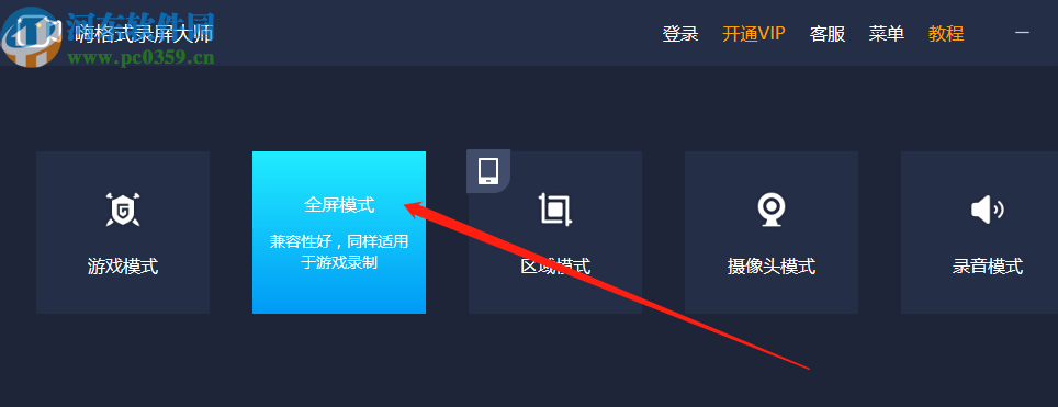 1.首先第一步我们打开软件之后在主界面中点击进入到全屏模式这个录制方式界面中。