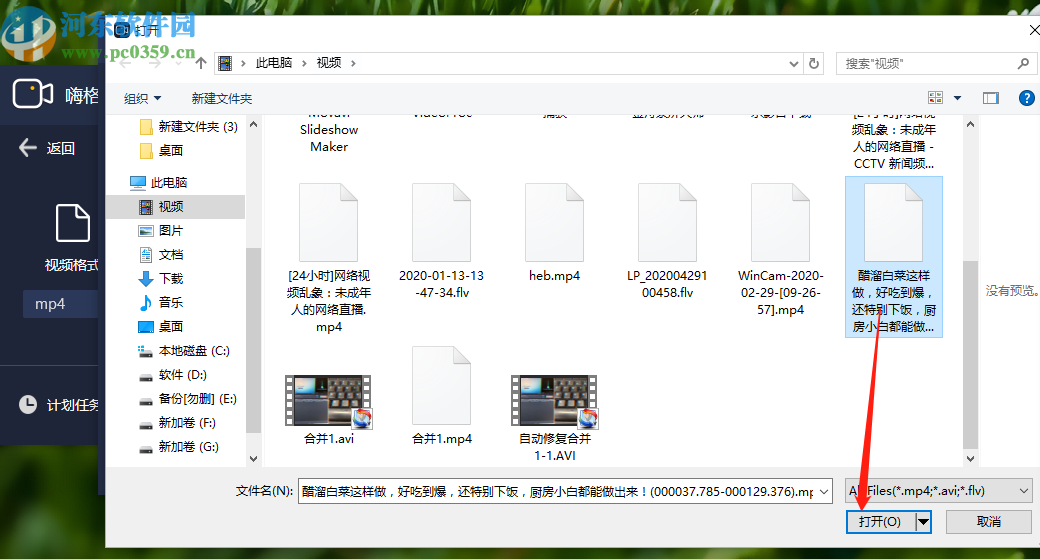 4.点击导入视频按钮之后会出现一个选择想要导入的视频界面,我们选中想要导入的视频之后,点击下方的打开按钮即可。