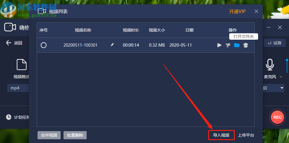 3.点击视频列表之后就进入到查看录制视频的历史记录界面了,然后我们在界面的右下角可以看到有导入视频选项,接着点击它。