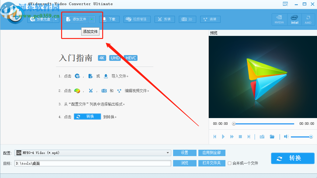 1.首先第一步我们打开软件之后在软件界面上方点击添加文件按钮,点击之后即可添加想要处理的视频文件。