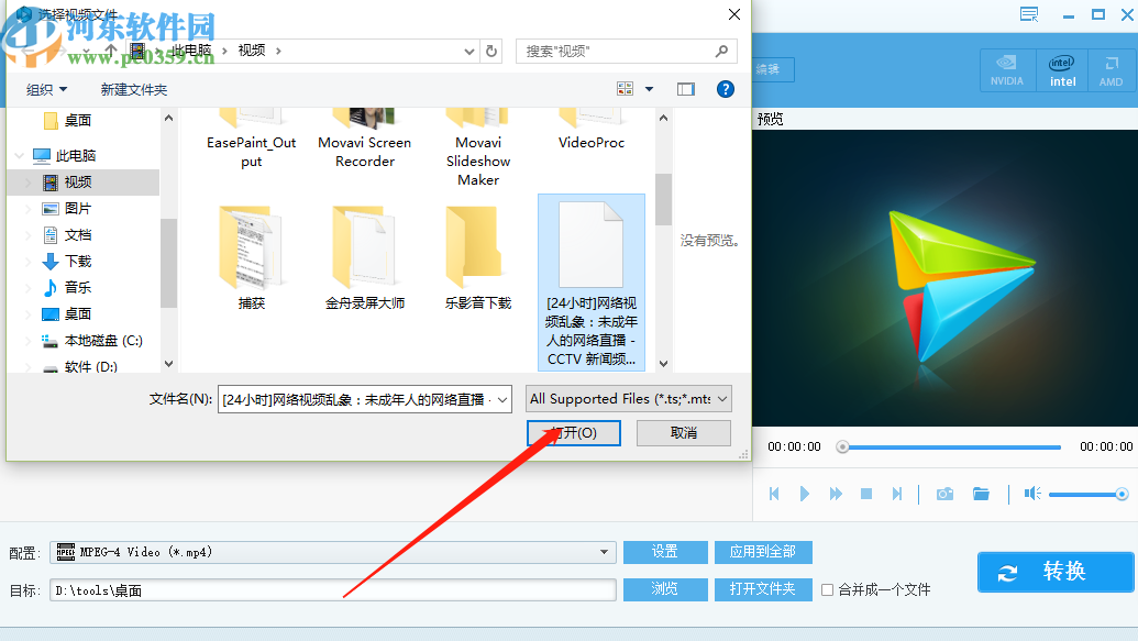 2.点击添加之后接下来会出现一个选择文件的界面,在这界面中我们选中想要剪切的视频之后点击打开按钮即可。
