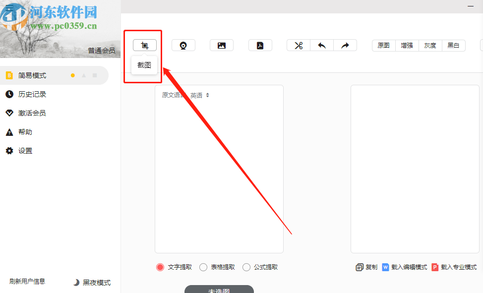 1.首先第一步我们打开软件之后在软件界面上方找到截图这个功能选项并点击,点击之后即可使用到截图识别功能。