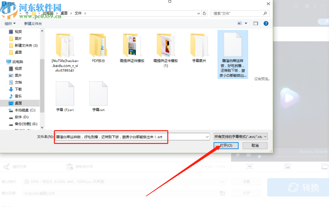 4.点击添加字幕选项之后会出现一个选择字幕文件的界面,我们选中想要添加的字幕之后点击右边的打开按钮即可。