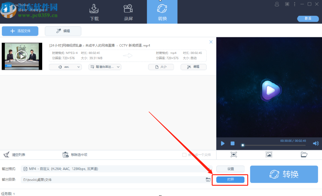 6.最后等到转换操作完成之后,我们点击界面中的打开这个按钮可以打开文件的输出路径,查看转换之后的视频文件。
