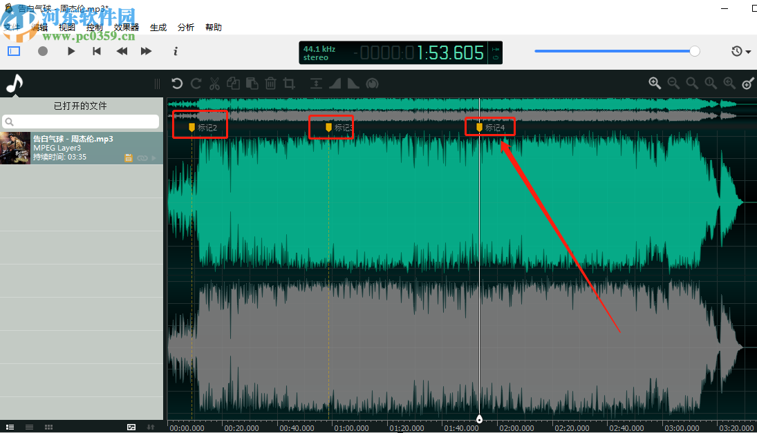 5.最后我们只需要根据自己的需求在编辑的音频轨道中创建需要的标记即可,如下图中所示。