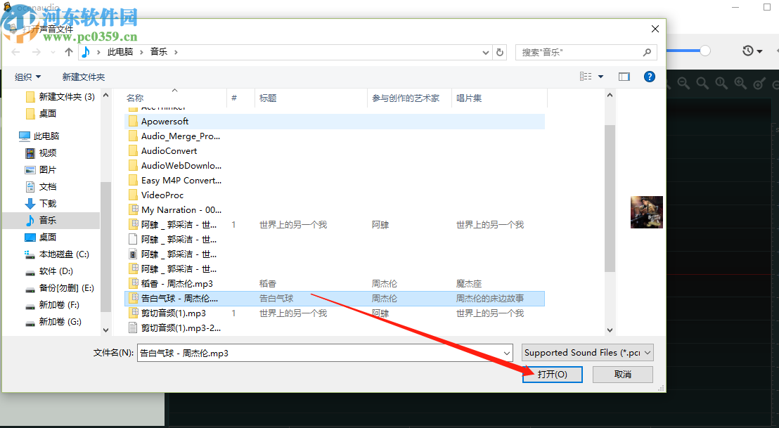 2.点击打开之后我们在出现的界面中选中想要编辑的那一条音频文件,然后点击打开按钮将它加载到软件中了。