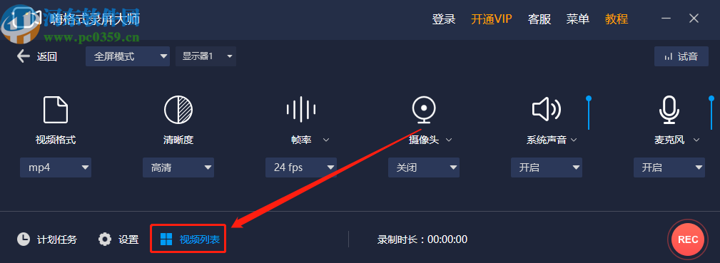2.进入到录制的参数设置界面之后,点击左下方的视频列表选项,然后就可以打开查看自己已经录制好的视频文件了。