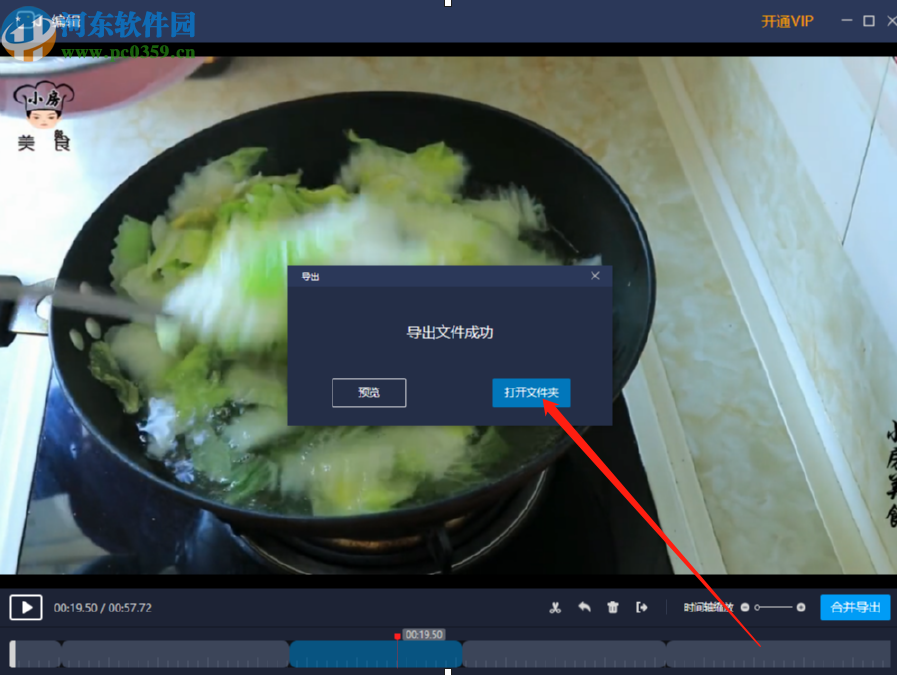 7.最后导出完成之后,在界面中会出现一个导出文件成功的提示界面,我们点击打开文件夹按钮即可查看导出的视频文件。