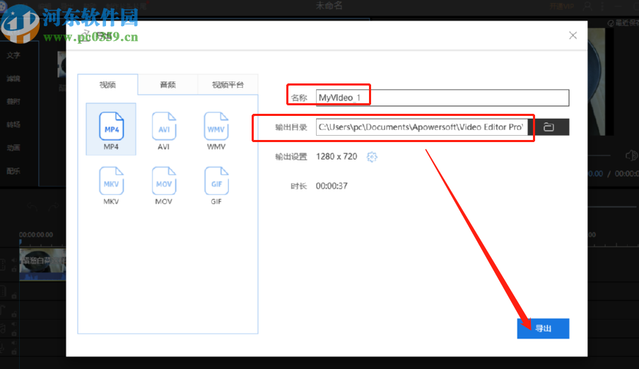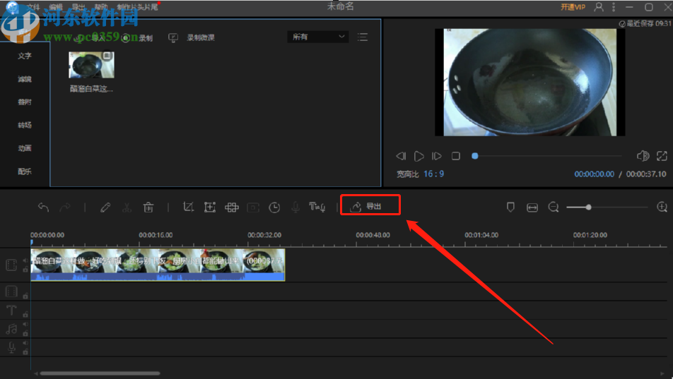 6.裁剪好视频文件之后,我们点击界面中的导出这个按钮,点击之后将视频导出保存到电脑中。