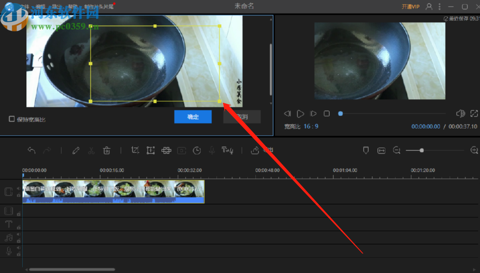 4.点击裁剪图标之后进入到裁剪视频的界面,我们可以看到一个黄色的选框,我们调整选框的大小位置选择想要裁剪的区域。