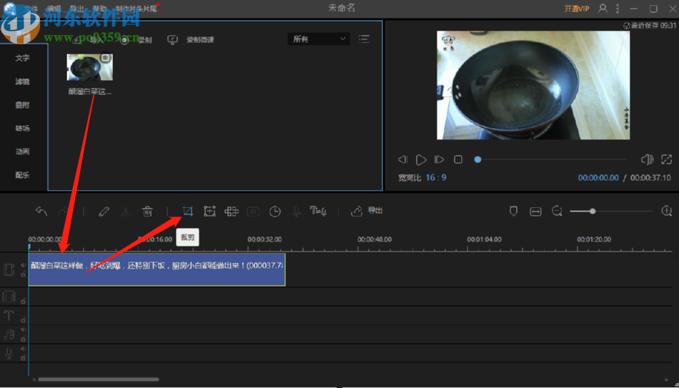 3.点击打开按钮之后我们选中软件界面添加进来的视频,拖拽到下方的操作台中,然后点击裁剪功能图标。