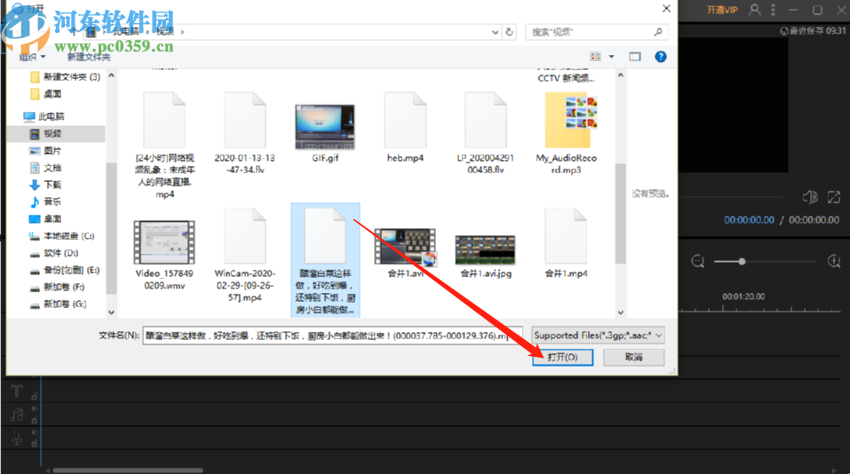 2.点击导入视频之后我们接下来在出现的选择视频文件界面中选中目标视频文件之后点击界面右下角的打开按钮即可。
