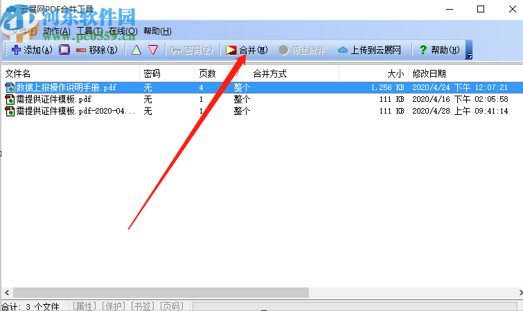4.调整好合并文件的顺序之后,我们点击界面中的合并按钮就可以开始合并PDF文件的操作了。