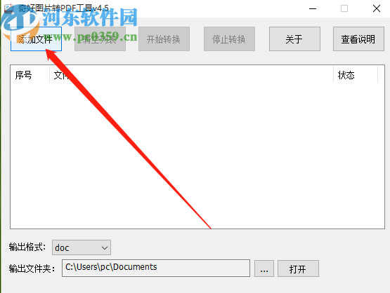 1.首先第一步我们打开软件之后,在界面中点击添加文件按钮,点击之后即可添加想要转换的图片文件。